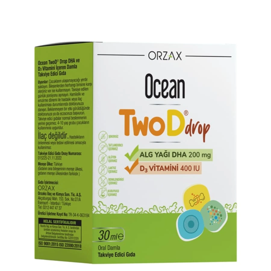 يحتوي Ocean TwoD Drop في كل 1 مل على 200 ملغ من DHA المستخلص من زيت الطحالب و400 وحدة دولية من فيتامين D. كما تم اختيار زيت طحالب DHA بعلامة BASF الحاصلة على براءة اختراع لضمان جودة عالية وثبات في التركيبة.