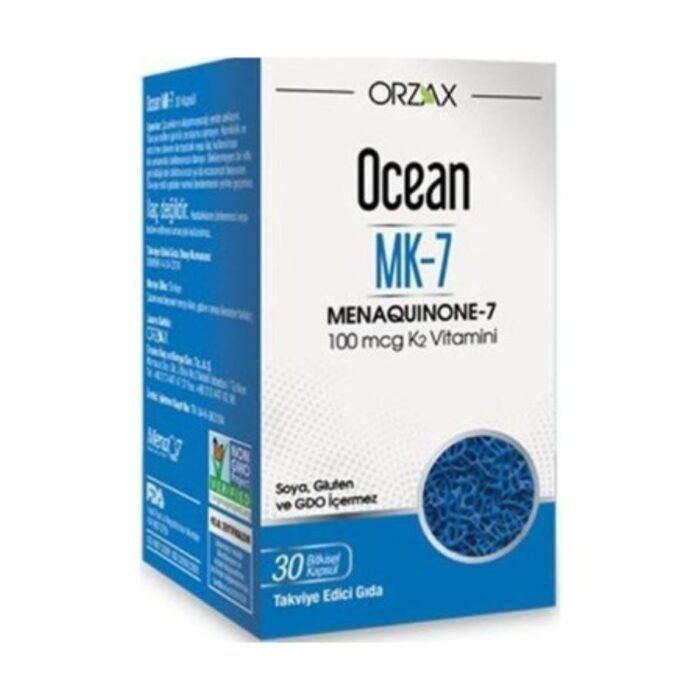 Ocean Menaquinone-7 هو مكمل غذائي يحتوي على فيتامين K2 بصيغة ميناكينون-7 (MK-7)، وهي إحدى صور فيتامين K المعروفة باستخدامها في المكملات الغذائية. تم تطوير هذا المنتج ليكون خيارًا مناسبًا للأشخاص الراغبين في دعم نظامهم الغذائي بفيتامين K2 ضمن نمط حياة صحي ومتوازن.
