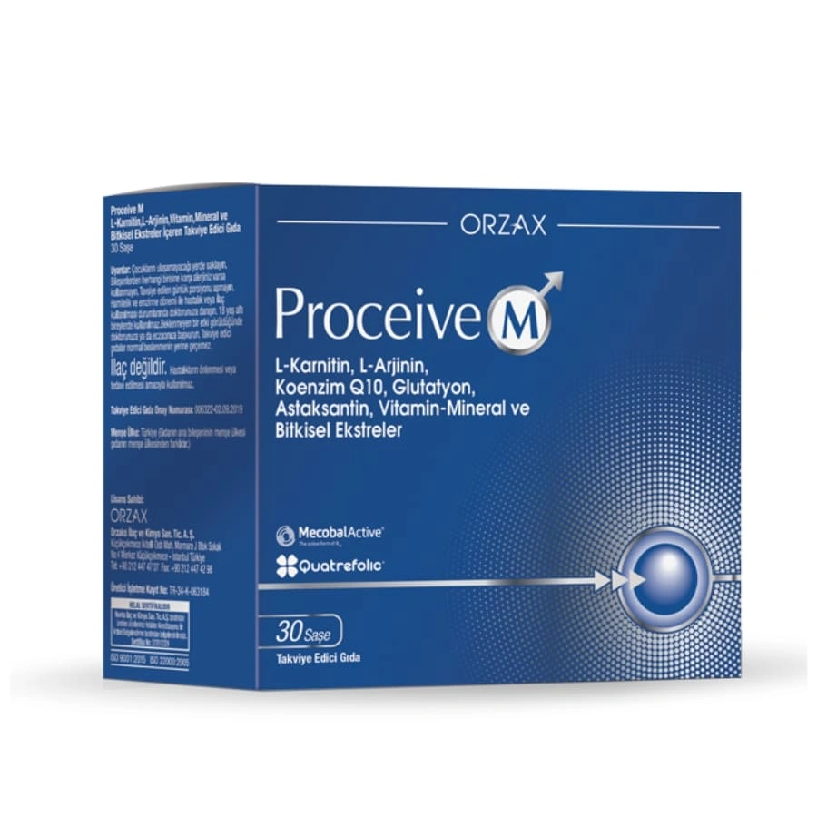 Proceive – M هو مكمل غذائي يحتوي على تركيبة متوازنة تضم إل-كارنيتين، إل-أرجينين إلى جانب مجموعة من الفيتامينات والمعادن والمستخلصات النباتية، وبنِسَب فيزيولوجية مدروسة لتكون مناسبة للاستخدام اليومي ضمن نظام غذائي متوازن.