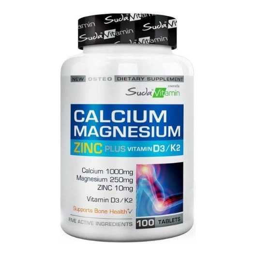 Suda Vitamin Calcium Magnesium Zinc Plus هو مكمل غذائي متكامل لدعم صحة العظام والأسنان والعضلات، ويعزز القوة العامة للجسم بفضل تركيبته الغنية بالكالسيوم، المغنيسيوم، الزنك، وفيتامينات D3 وK2.