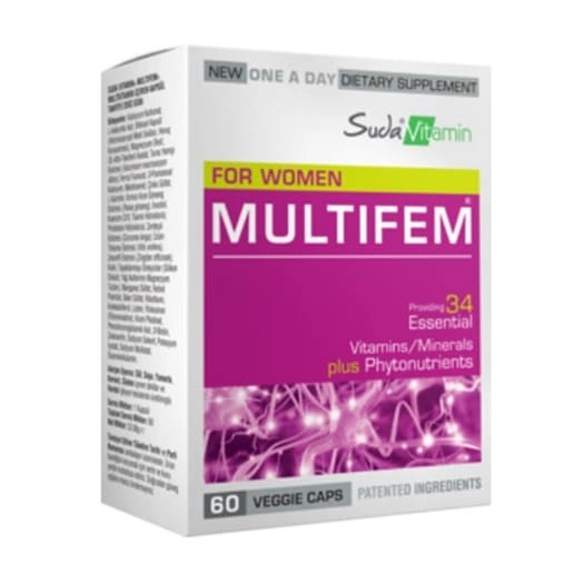 Suda Vitamin Multifem Multivitamin هو مكمل غذائي مصمّم خصيصًا لتلبية احتياجات النساء اليومية من الفيتامينات والمعادن والعناصر النباتية النشطة.