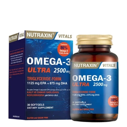 نوتراكسين أوميغا 3 ألترا 2500 ملغ هو مكمل غذائي عالي التركيز يحتوي على كميات مرتفعة من أحماض أوميغا 3 الدهنية الأساسية EPA وDHA المستخلصة من زيت السمك عالي النقاء. يتميز هذا المنتج بتركيبته الخالية من المعادن الثقيلة، مما يجعله خيارًا مناسبًا للاستخدام اليومي ضمن نمط حياة صحي ونظام غذائي متوازن.